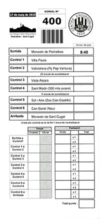 Comentari: La marxa ha estat un èxit, tot i que el recorregut va ser modificat a última hora (per preservar les aus de la Font Groga). També vam introduir movetats en el sistema de control horari i cronometratge, hem rebut molts bons comentaris! consulteu l'enquesta.